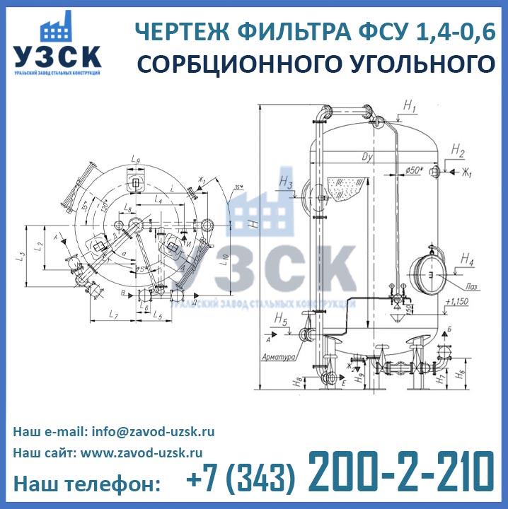 Если вы ищете фильтры ФСУ-1,4-0,6 в Тюмени от изготовителя, то Вы на правильном пути! Уральский завод стальных конструкций – непосредственный производитель сорбционных фильтров ФСУ, предлагающий самые выгодные цены на ФСУ-1.4-0.6 в Тюмени. По окончании процесса производства угольные фильтры проходят гидравлические испытания пробным давлением 0,9 МПа на аттестованном гидростенде, находящимся в собственности завода УЗСК. Мы гарантируем высокое качество выпускаемой продукции, и в этом уже убедились ведущие предприятия промышленного сектора России и стран ЕАЭС (см. раздел «Наши клиенты»).
