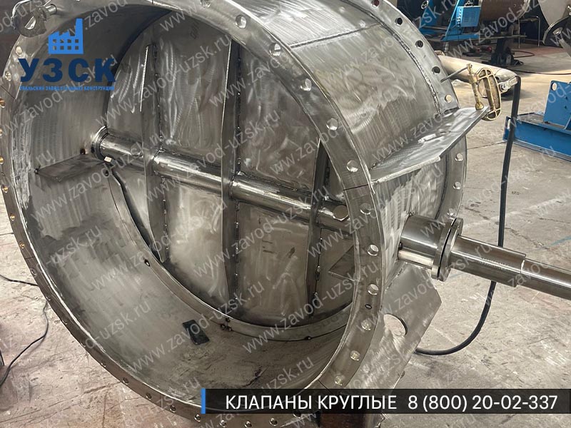 Круглый клапан ПГВУ представляет собой участок трубы, оборудованный изнутри створками. Шибер ПГВУ повторяет геометрию прохода. Для изготовления круглых газоплотных клапанов используются устойчивые к коррозиям и температурным воздействиям материалы (нержавеющая сталь, низколегированная сталь с АКП).
